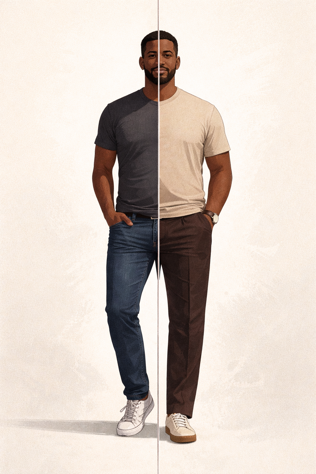 Footwear and grooming shift the entire read of an outfit. They sharpen presence immediately.
